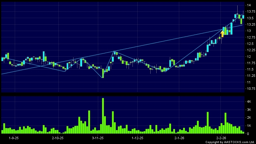 Disclaimer:The information, financial market data, quotes, charts, statistics and / or various technical analysis indicators are automatically generated based on the analyses and interpretations of publicly available information and should be used as references only at your own discretion. Such automatically generated content does not reflect the views or opinions of AASTOCKS.com Limited nor does AASTOCKS.com Limited make any guarantees to their accuracy, completeness, timeliness or correctness. You are advised to consult independent professional advice to verify pricing information or to obtain more detailed market information. Any uses of information or trades executed following the said automatically generated content are taken at your own risk for your own account.