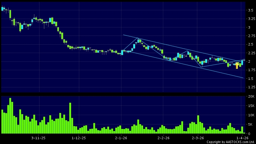 区域突破指股价在过去的一段时间只在一个范围在内活动,然後股价上升作出突破,升穿区域的顶部,技术走势向好。(港股报价延迟最少十五分钟。沽空资料截至 2026-04-02 16:25。)