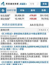 用户只需用手机浏览器登入www.aastocks.com,操控介面将自动转换至手机版网站。
