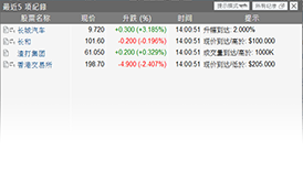 | 期货及期权市场深度 | 同步接收香港期货交易所页,涵盖恒指股票期货及恒指股票期权等详细资料 |